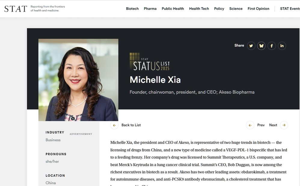 日前,国际著名生物医药行业媒体《STAT》隆重发布了其年度重磅评选“The 2025 STATUS List”(2025年全球领军人物榜单),该榜单从全球医疗政界、生物技术、卫生技术、医学和卫生保健等领域,遴选了对塑造健康与恒星集团科研生命未来全球最具有影响力的50位领军人物。